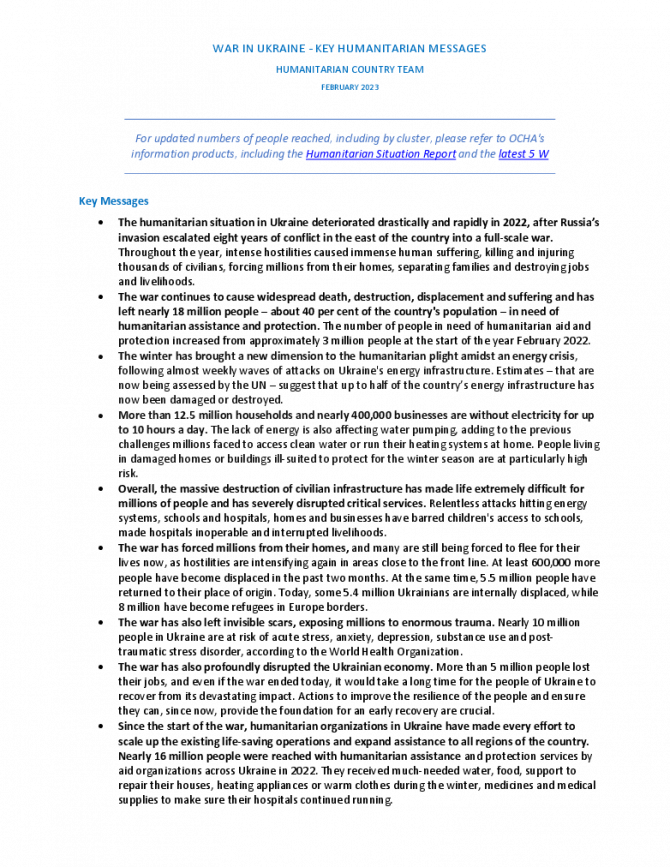 War in Ukraine - Key Humanitarian Messages - Humanitarian Country Team - February 2023