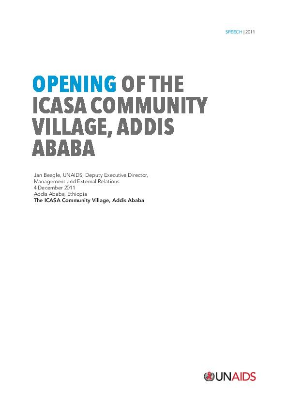 Speech by Jan Beagle, UNAIDS Deputy Executive Director, Management and External Relations, at the Opening of the ICASA Community Village, Addis Ababa, Ethiopia