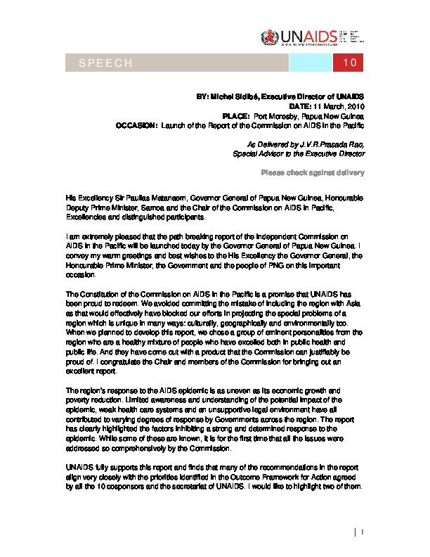 UNAIDS Executive Director's speech at the opening session of the 122nd Inter-Parliamentary Union Assembly