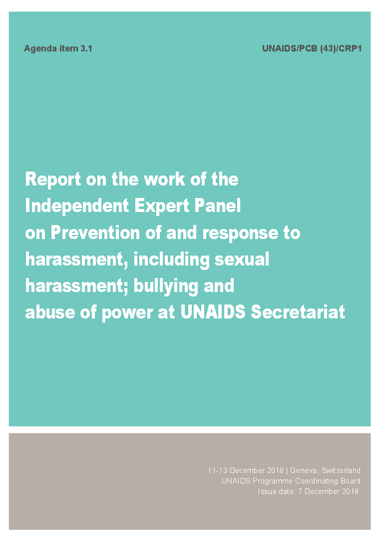 Report on the work of the Independent Expert Panel on prevention of and response to harassment, including sexual harassment; bullying and abuse of power at UNAIDS Secretariat