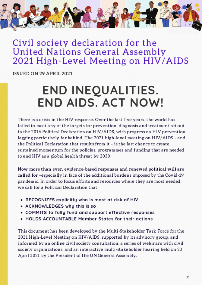 Civil society declaration for the United Nations General Assembly 2021 High-Level Meeting on HIV/AIDS