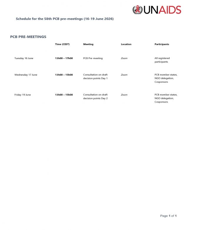 PCB58 pre-meetings schedule