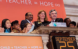 UNAIDS Executive Director rings the New York Stock Exchange Opening Bell with former UK Prime Minister Gordon Brown in support of Education.