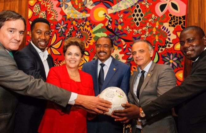 L to R: Vice-Minister of Health, Jarbas Barbosa; Ndaba Mandela; Brazilian President Dilma Rouseff; UNAIDS Executive Director, Michel Sidibé; UNAIDS Deputy Executive Director, Luiz Loures; and Kweku Mandela.