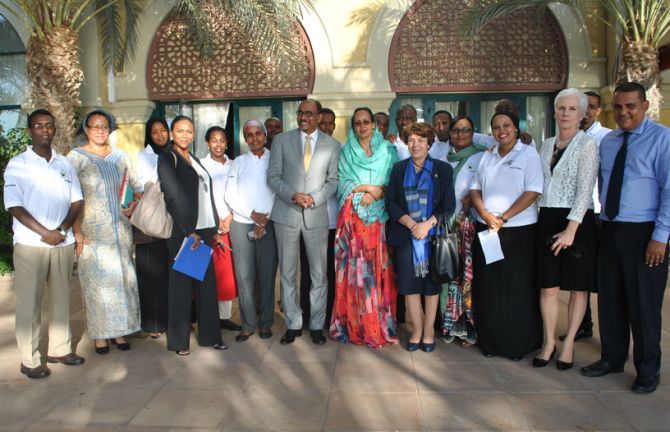 12 October 2015 12 October 2015During a visit to Djibouti, UNAIDS Executive Director Michel Sidibé has met a group of volunteers involved in an innovative public-private partnership between the Ministry of Health, the BE Health Association and the Kempinski Hotel Group.