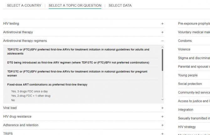 Covering areas as diverse as a country’s ability to diagnose HIV among young babies, the existence of laws that discriminate against transgender people and whether people are prosecuted for carrying condoms, the Laws and Policies Analytics website aims to give a full overview of a country’s laws and policies related to the HIV response. It also allows to view policy data jointly with other data on the HIV epidemic and response.