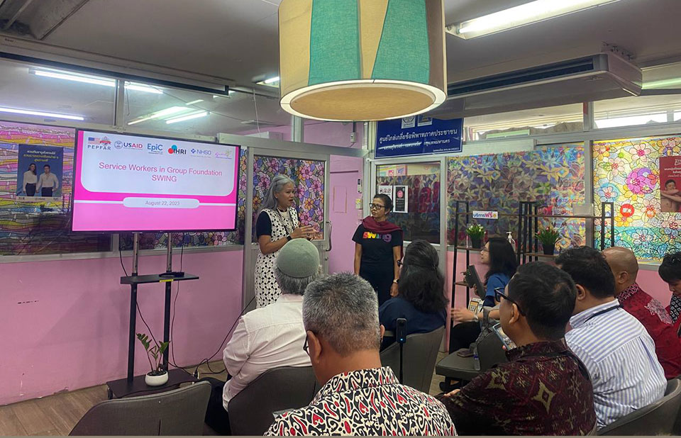 On day one, the Indonesian Ministry of Health and Thai Ministry of Public Health delegates discussed the HIV epidemic, trends, and challenges in each country. They shared insights on HIV prevention, treatment and stigma reduction in the HIV response. The following day, the mission team visited community organisations— including the Service Worker in Group Foundation (SWING), a non-governmental organization working for sex worker rights, and the Rainbow Sky Association of Thailand (RSAT), an organization that offers sexual healthcare for men who have sex with men, migrants, people who use drugs, sex workers and transgender people.