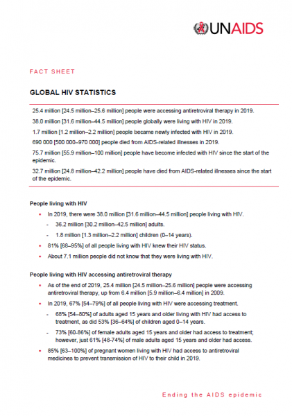 UNAIDS is also urging countries to increase investments in both diseases. In 2019, funding for HIV fell by 7% from 2017, to US$ 18.6 billion. This setback means that funding is 30% short of the US$ 26.2 billion needed to effectively respond to HIV in 2020.