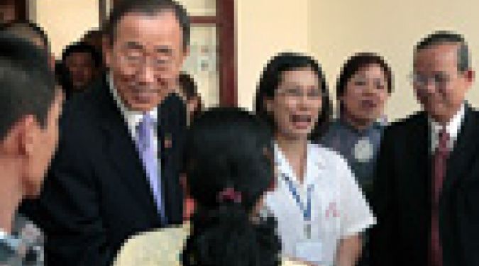 El secretario general de las Naciones Unidas, Ban Ki-moon, visita un centro de tratamiento con metadona en Camboya