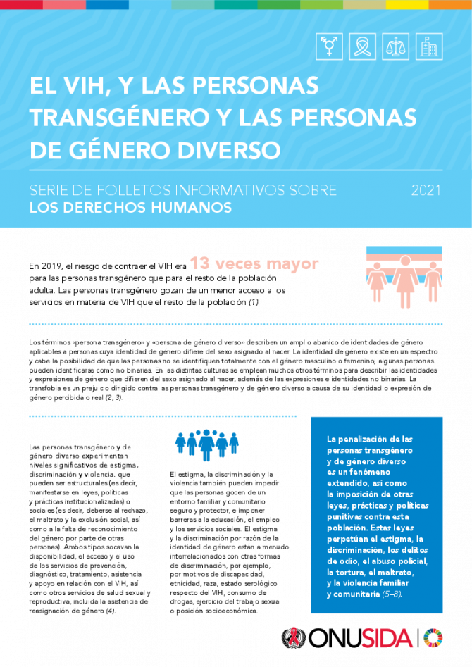 El VIH, y las personas transgénero y las personas de género diverso — Serie de folletos informativos sobre derechos humanos