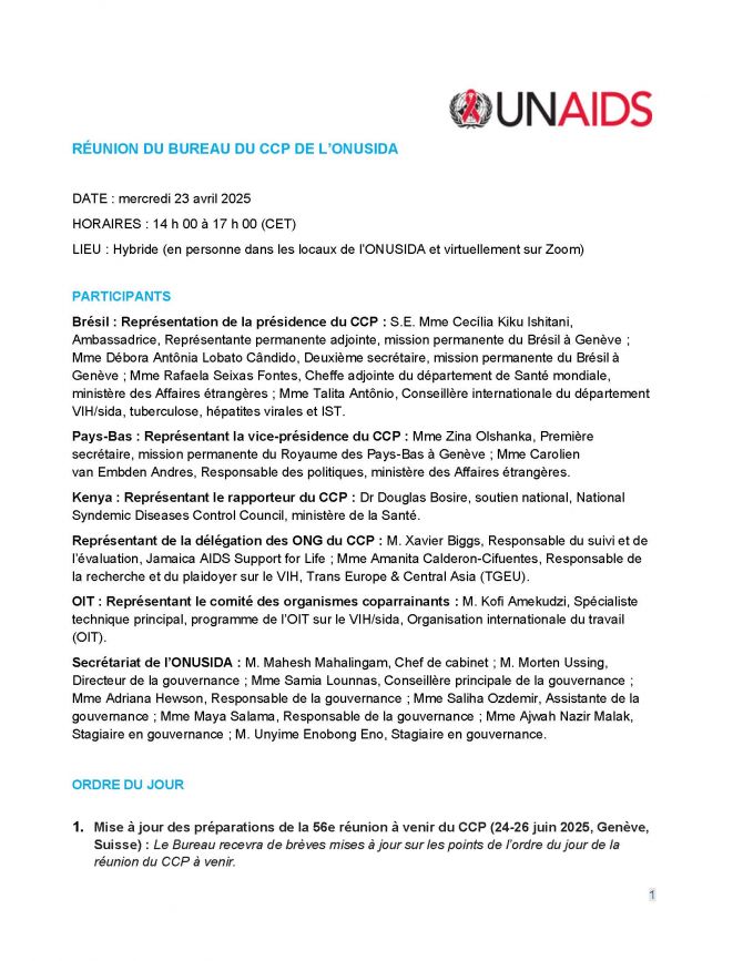 Réunion du Bureau du CCP de l’ONUSIDA 23 avril 2025
