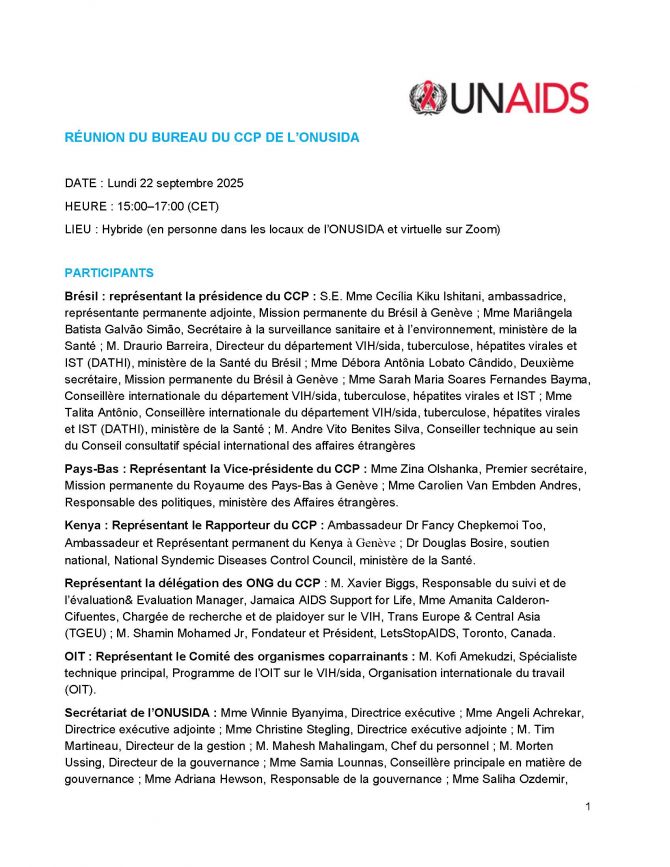 Réunion du Bureau du CCP de l’ONUSIDA 22 septembre 2025