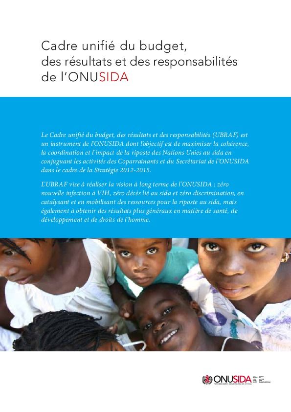 la coordination et l’impact de la riposte des Nations Unies au sida en conjuguant les activités des Coparrainants et du Secrétariat de l’ONUSIDA dans le cadre de la Stratégie 2012-2015. L’UBRAF vise à réaliser la vision à long terme de l’ONUSIDA : zéro nouvelle infection à VIH, zéro décès lié au sida et zéro discrimination, en catalysant et en mobilisant des ressources pour la riposte au sida, mais également à obtenir des résultats plus généraux en matière de santé, de développement et de droits de l’homme.