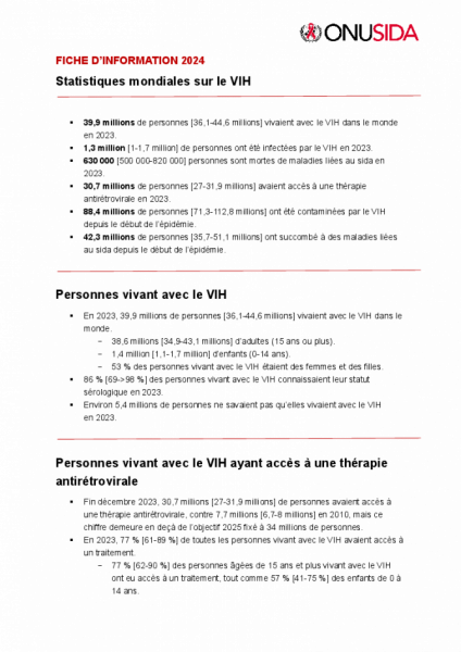 Fiche d'information — Dernières statistiques sur l'état de l'épidémie de sida