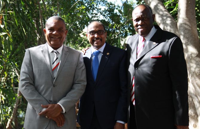 Lors de sa visite, M. Sidibé a rencontré le ministre des Affaires étrangères, A. J. Nicholson, et les ministres actuels et anciens de la Santé, Horace Dalley et Fenton Ferguson.