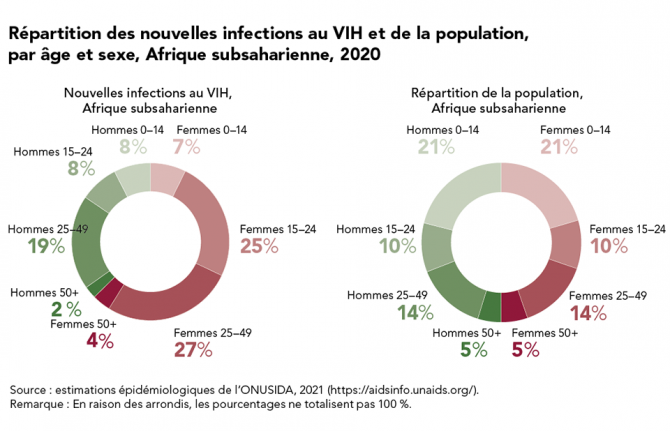 Ces répercussions sont les plus marquées en Afrique subsaharienne, où les adolescentes et les jeunes femmes (15 à 24 ans) représentaient 25 % des nouvelles infections au VIH en 2020, alors qu’elles ne comptaient que pour 10 % de la population.