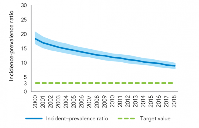 Общемировое соотношение между уровнем заболеваемости и уровнем распространенности сократилось с 11,2 % в 2000 году до 6,6 % в 2010 и 4,6 % в 2018 году. Это означает, что в борьбе с эпидемией ВИЧ уже достигнуты определенные успехи. Несмотря на это, мир вряд ли искоренит СПИД как угрозу общественного здравоохранения к 2030 году.